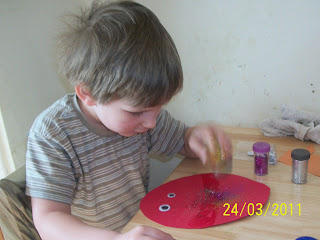 Making an easter tree, this was a craft set that was bought for him last year that I discovered on the craft shelf.