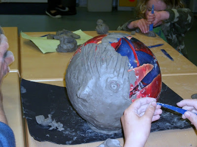 The second craft was claywork. Older kids had a go at doing their self portrait in clay, from touch alone, i.e. touching their faces then trying to create what they felt in clay. The younger ones made thumb pots, snails, and various other squidged clay offerings.